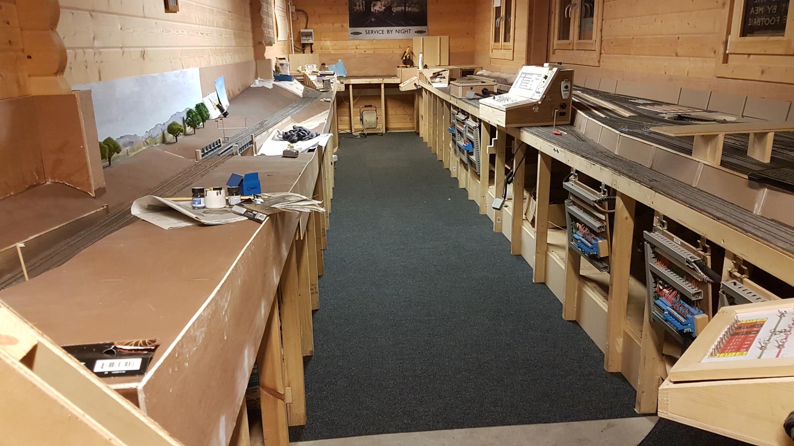The problem with a concrete floor is that its easy to kick up dust. I decided to do something about it and carpet tiles seemed to be a cost effective answer. I've added kick boards, one to hold down the tiles and two, to stop things going underneath. |