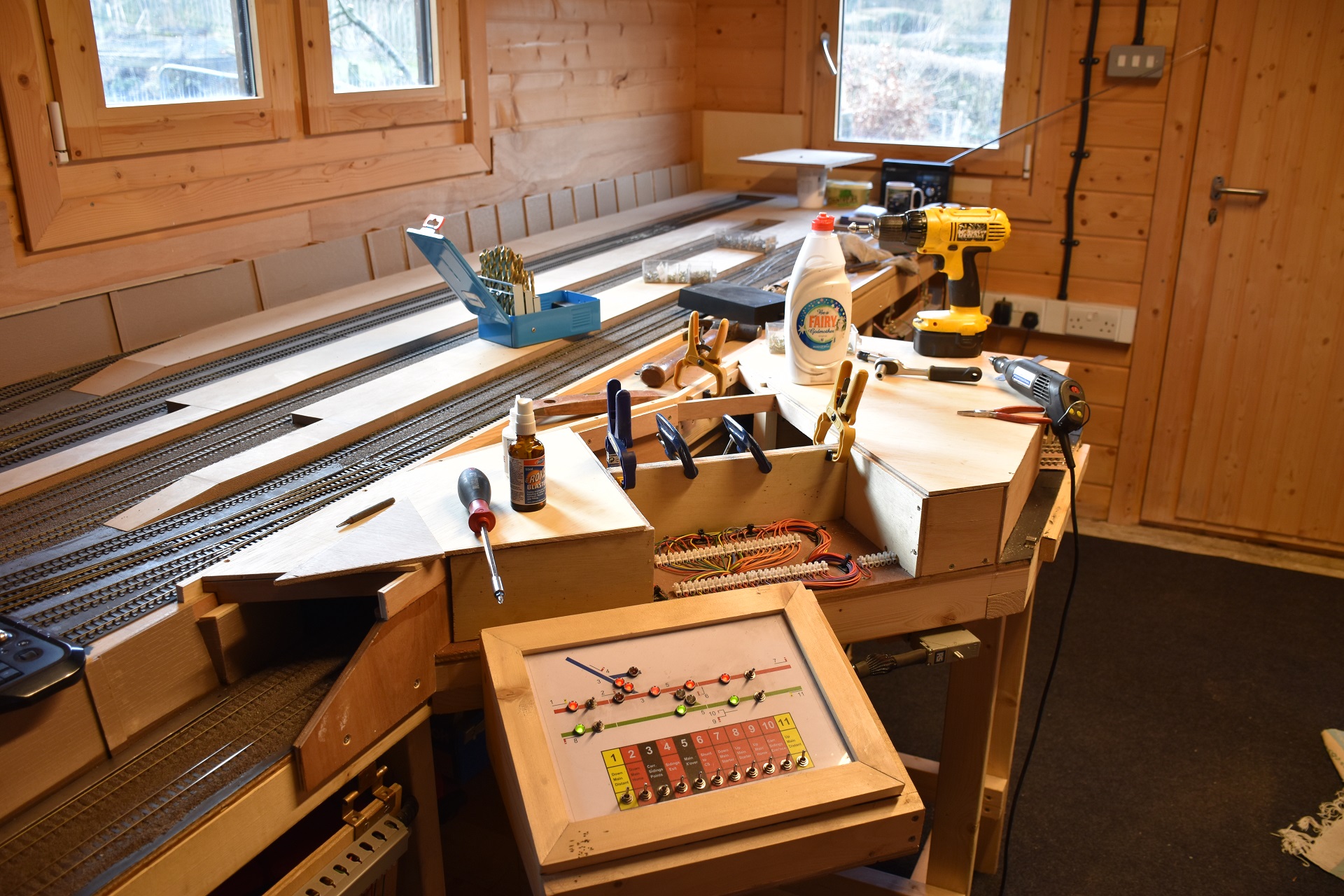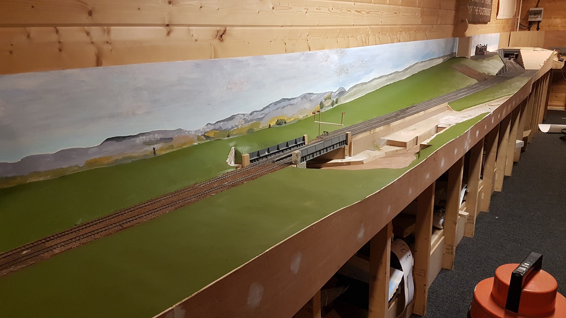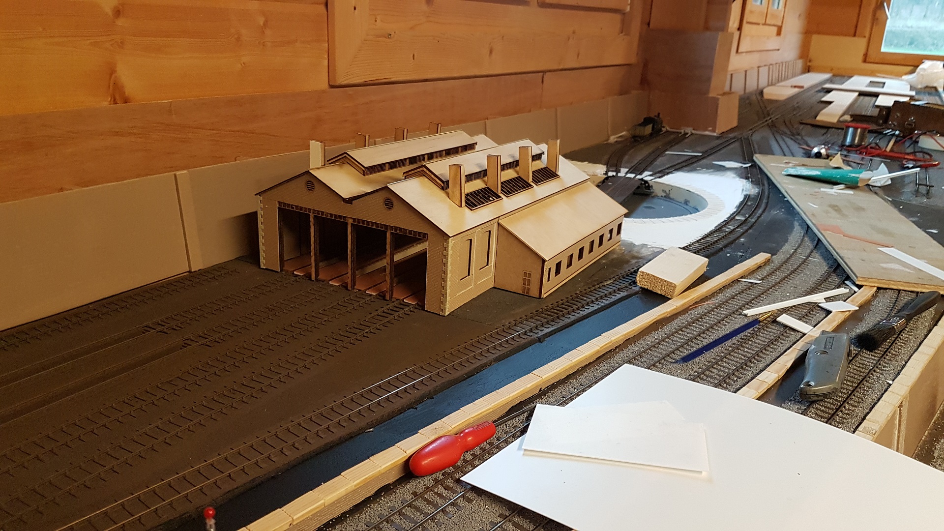 As a break for ballasting, this area around the terminus station needs to be boxed in. The central section needs to be accessible for track cleaning.