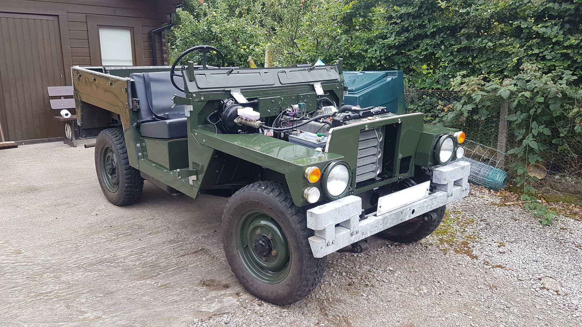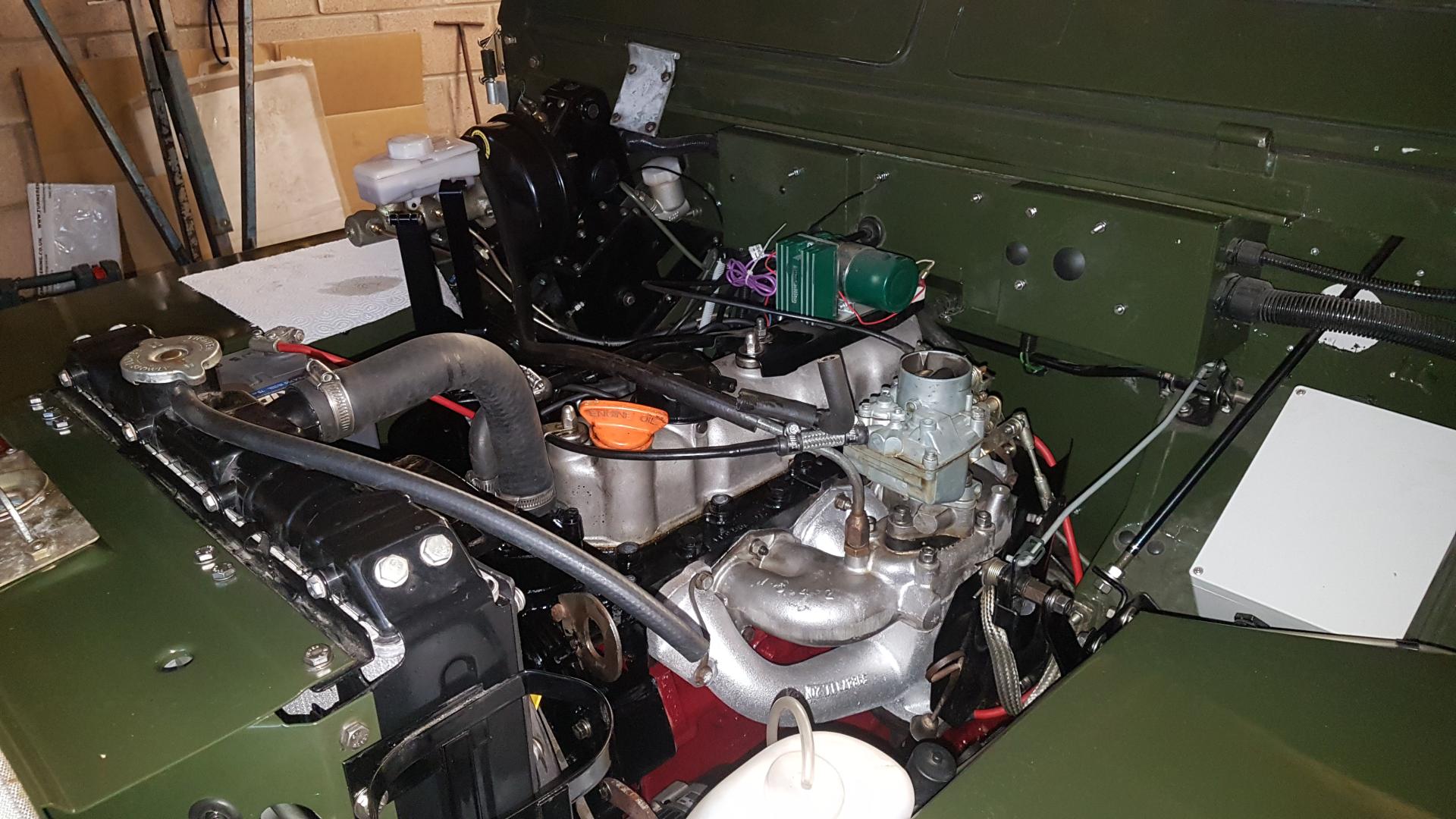 Ready for the last body parts to be fitted. Now we get to the "interesting" bit. On the first trial run, it was obvious that the rebuild had made no difference whatsoever! To me, the internet is an amazing resource. OK 75% of it might be pure drivel but gems can be found if you persist. I eventually stumbled on Nick's Land Rover Site. A mine of useful information. He described a problem with the modern engine mounts that are supplied for Series 3 Land Rovers. "It seems that most pattern and seemingly some genuine mountings are made of incorrect specification rubber." Nick's site pointed me at Glencoyne Engineering who will supply 200Tdi spec engine mounts that can be modified to fit. Glencoyne supply a diagram showing how the mounts can be modified to fit a Series 3 installation. The mod involves grinding off a small amount of the metal discs of the engine mount to fit the LH and RH installation. It was a lot harder to replace the engine mountings with everything in place but after a lot of swearing, the job was done. Now the lightweight is completely transformed. No rattles or rumbles. |