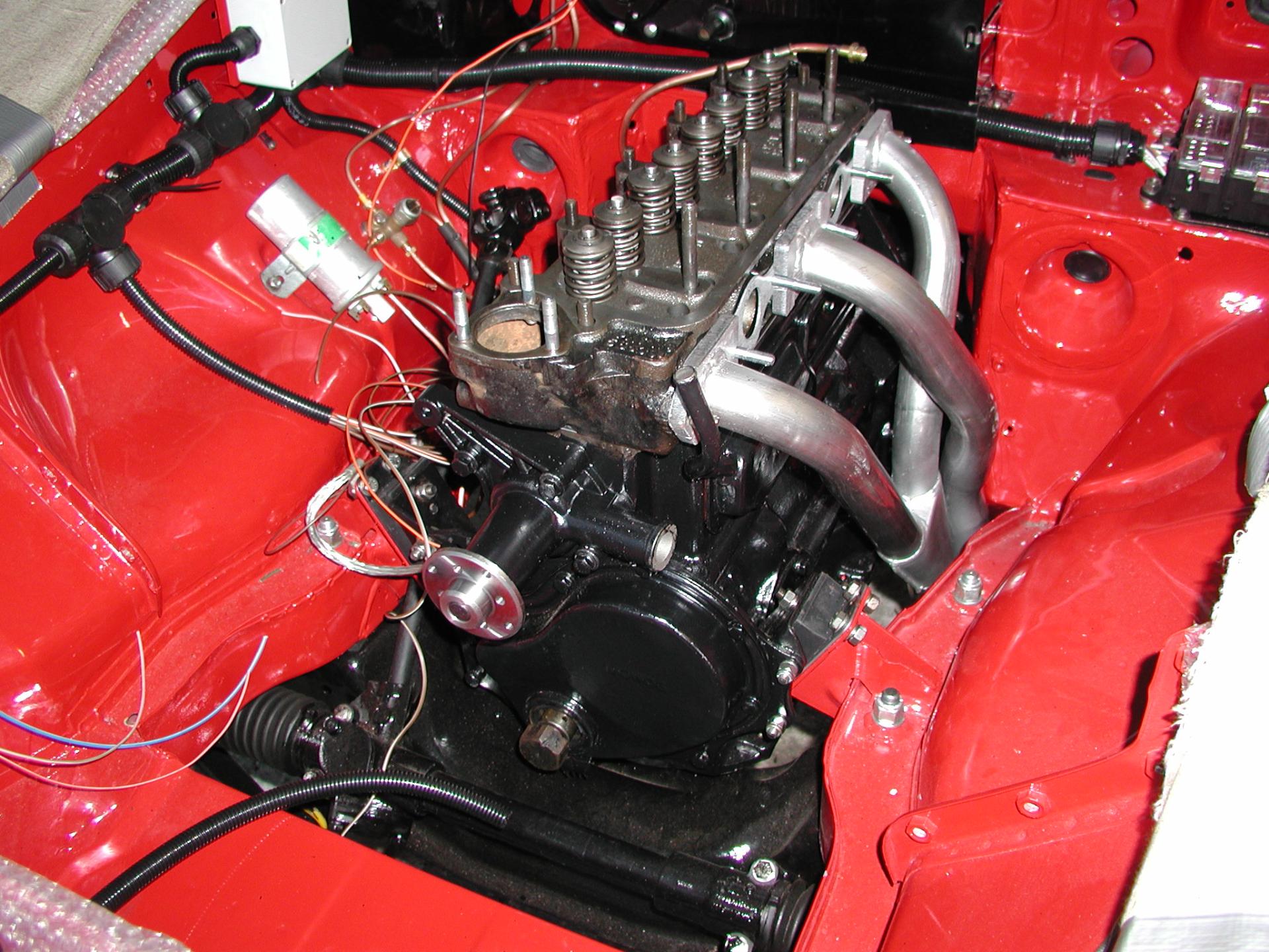 The engine is virtually finished now. It was a matter of adding each bit in turn in a logic manner. The fan responded well to a good scrub in the sink. The radiator diaphragm needed replacing as there were at least 6 stress cracks round the outside. The engine wiring is finished but the water temperature sensor has yet to be fitted. I find that I have to fit the oil pipe, oil pressure gauge pipe and distributor in that order as its not possible to get to the oil pipe once the distributor is fitted. Note new oil cooler pipes. The rubber strip that holds them together perishes quickly. |