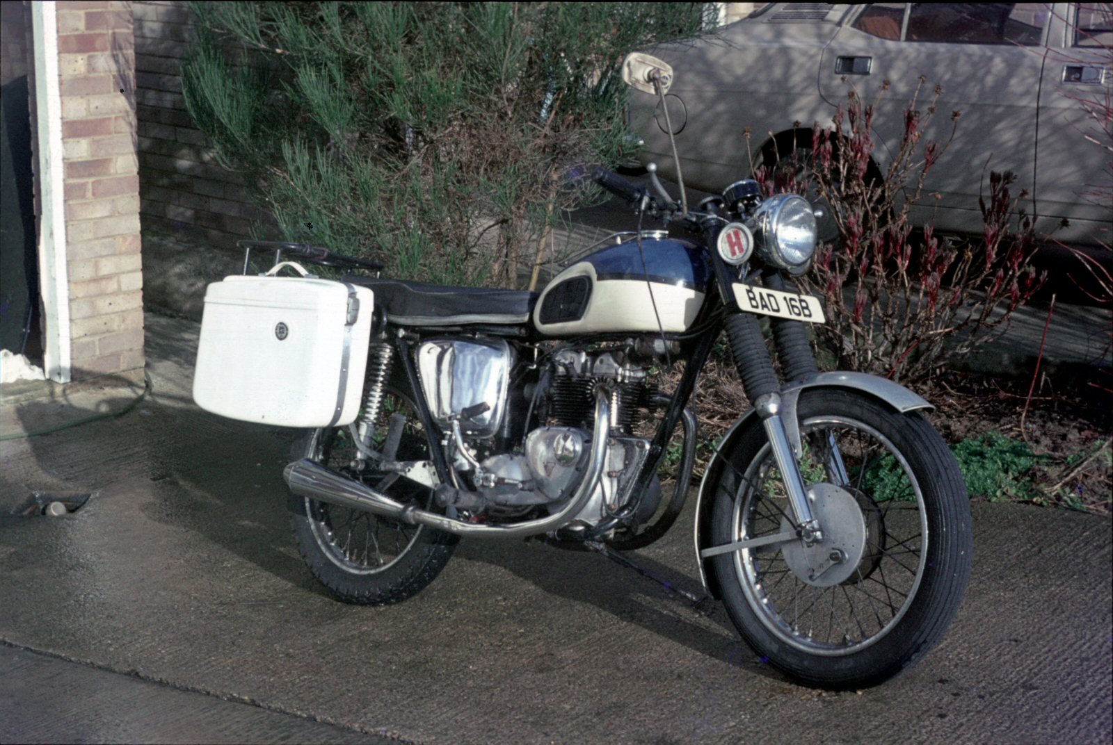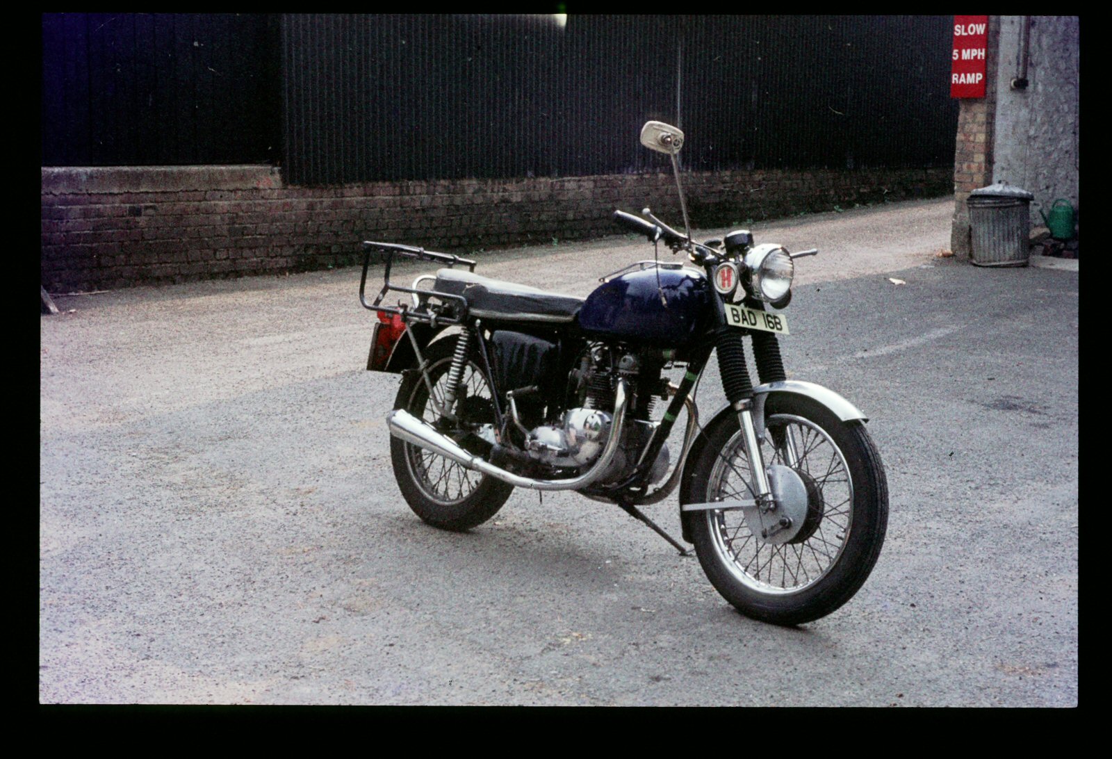 If you've read other parts of this website, you'll know that my first bike was a Bantam. The Bantam was a lot of fun and I went a lot of places on it. However, it was suffering from intermittent electrical problems and I was lusting after a Triumph Twin. If you weren't infatuated by the new Japanese bikes (a. I couldn't afford one, b. I have a stupid loyalty to British products) then the only bike to have was a Triumph. I still think the late 60s Triumph is the best looking bike ever - to me, it just looks right. In February 1973, when I was in the second year sixth form at school, I had saved up enough money to be able to get something - it would have to be fairly cheap as I didn't have much money. I went to see a Triumph T90 which was for sale in the local paper; took one look and left rapidly. The weeks dragged on, nothing else appeared in the paper and there was nothing I could afford in the dealers. So I rung up the seller of the T90 and asked him if it was still for sale - it was. So I ended up buying a pile of junk. It was so bad, he had to deliver it in his van as it wouldn't run. I got it started - you could go off down the road and then it would suddenly go very rich, cough out lots of black smoke and cough to a stop. My dad (very non technical) took one look, swore (which he never did normally) and stumped off back into the house.
