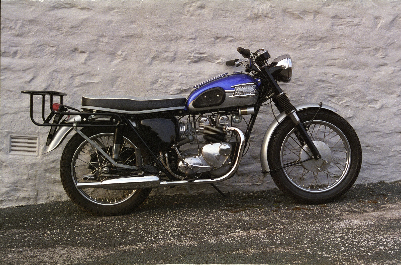 So the goal was to try to get as much right as possible. Roy Bacon's book "Triumph Twin Restoration" was invaluable as it had a lot of detail photographs. Unfortunately there was only one of a 1964 T90 and some key details were missing from the book (how to mount the coils). If you're a purist then it might be best to skip to the next paragraph. However, I was prepared to deviate from the standard. Wherever possible all fasteners were going to stainless. I was fed up of the plating washing off bolts within a couple of months and spoiling the look. Andy Molnar in Preston was excellent and a succession of odd studs and bolts were sent down as templates. A 12V upgrade with a decent power regulator was a must. The standard system of using the battery as a big capacitor was useless and you needed 12V lighting to stand a chance of competing with the lighting around you. Electronic ignition was another must. I had one trip around Bolton when I noticed a funny stain on the silencer. The battery had exploded and leaked acid all over the silencer. A good way of stripping chrome.